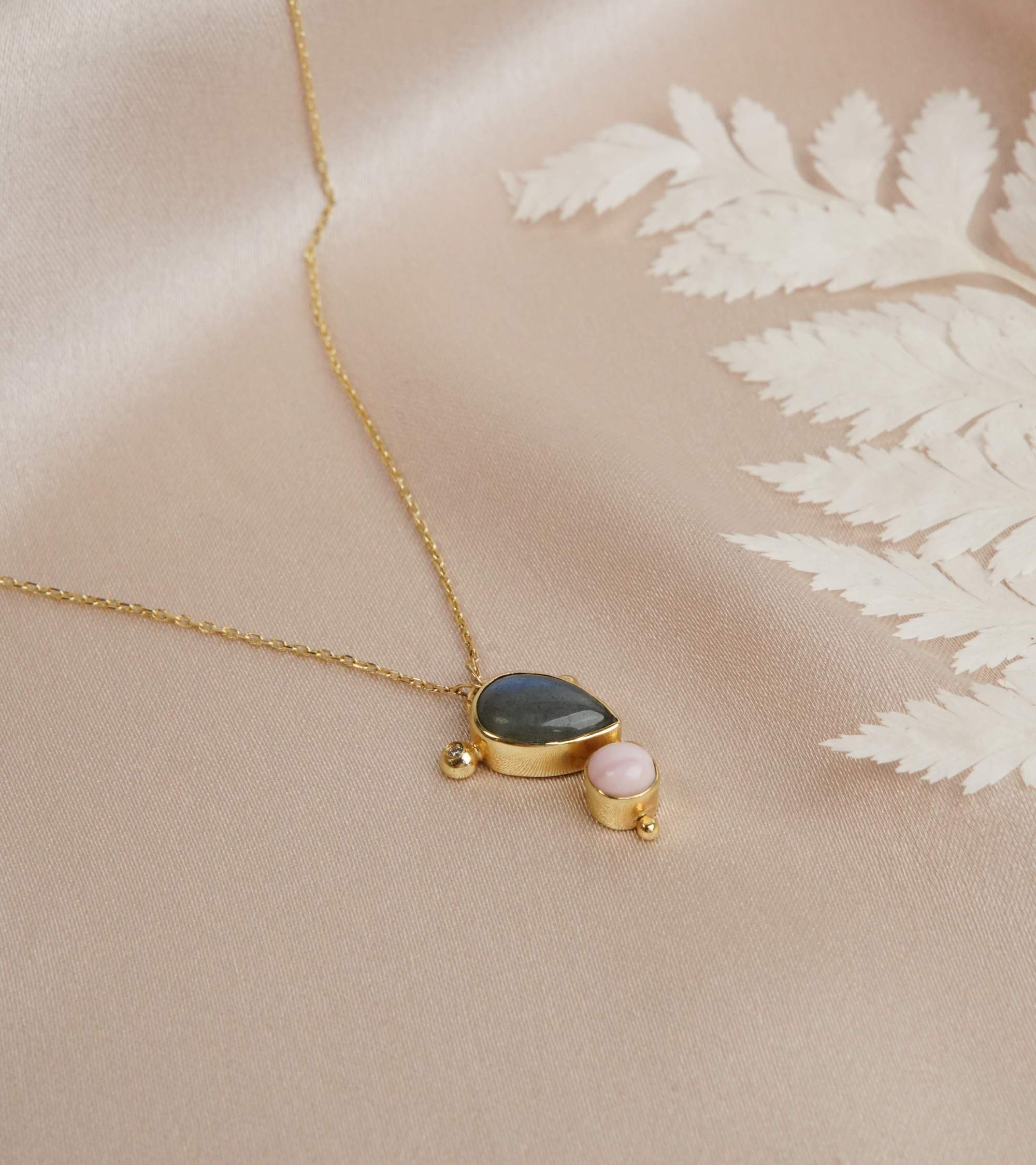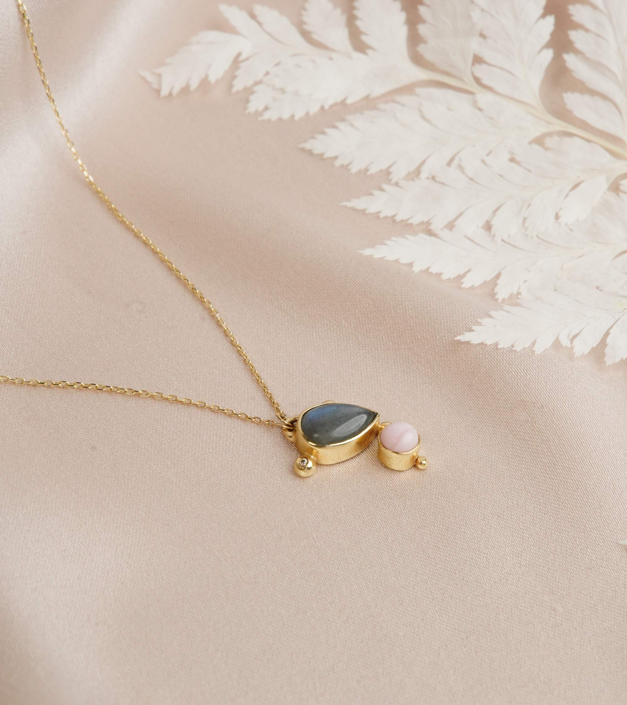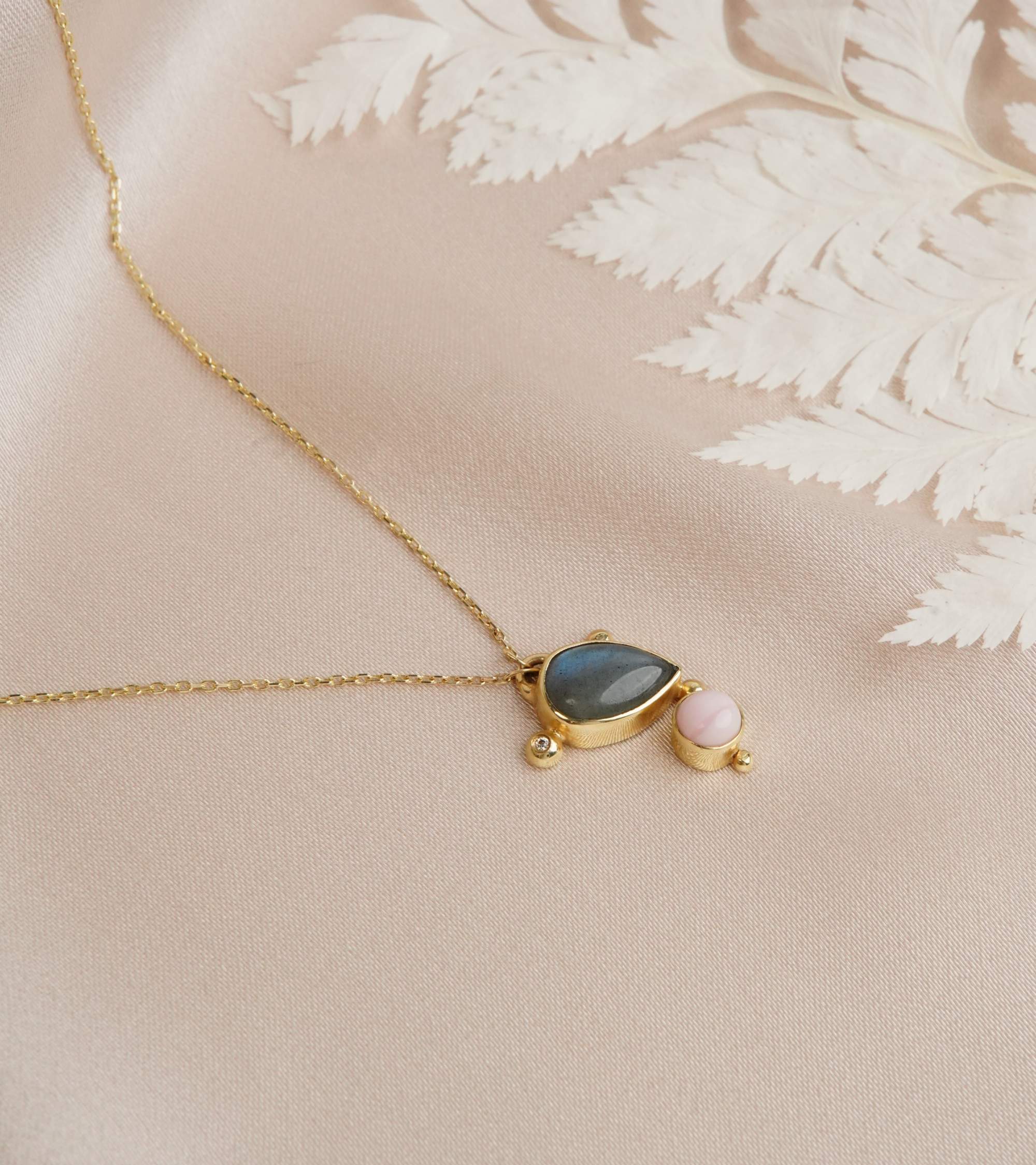 14K Gold Necklace with Labradorite and Diamond