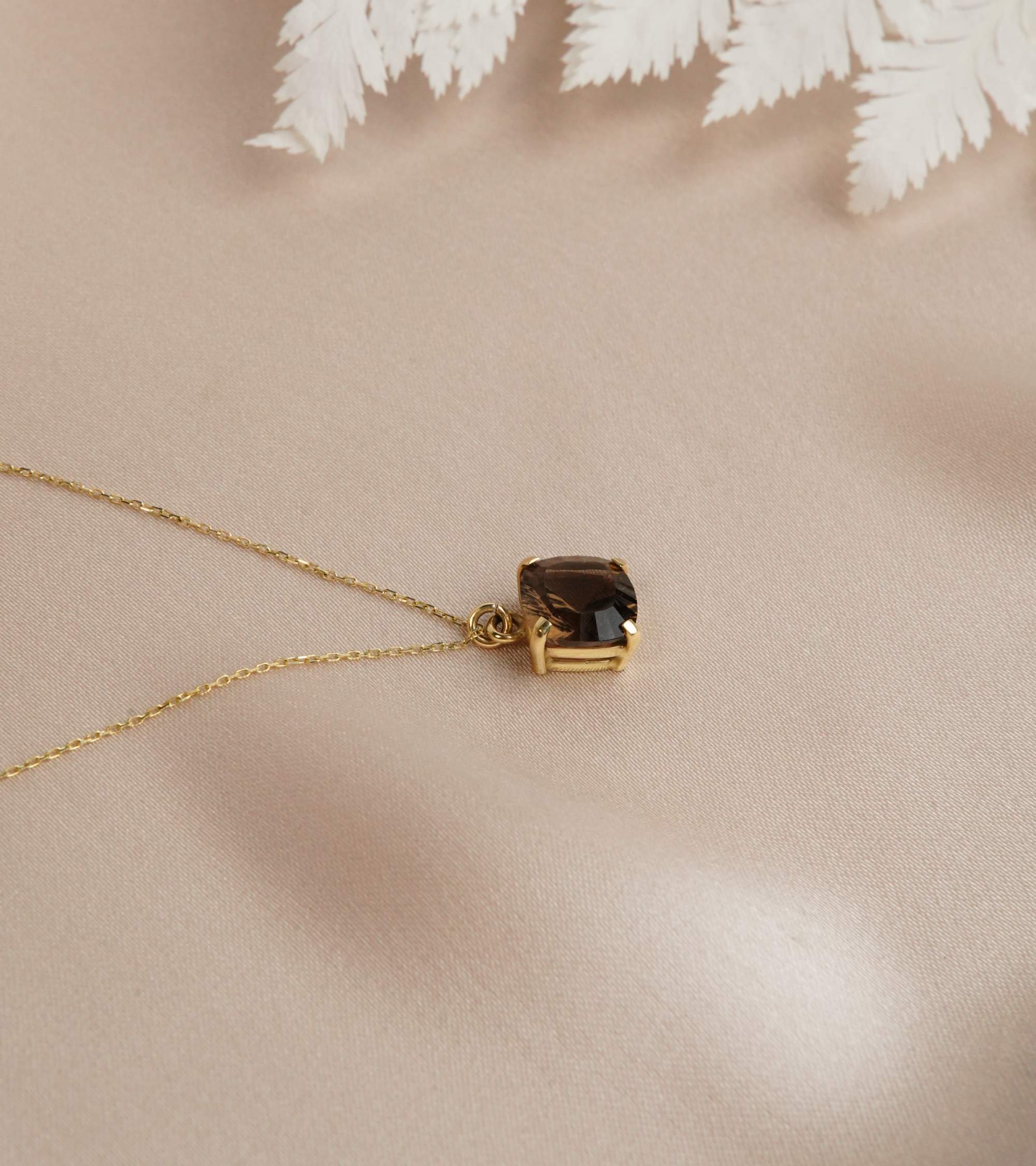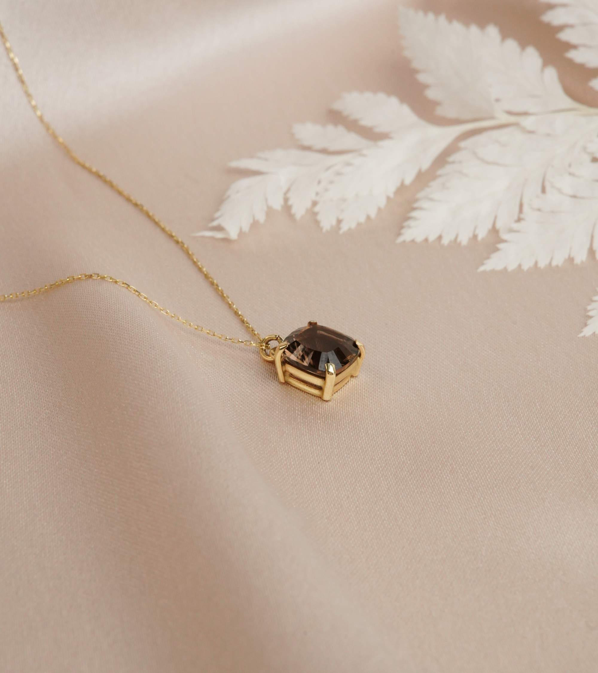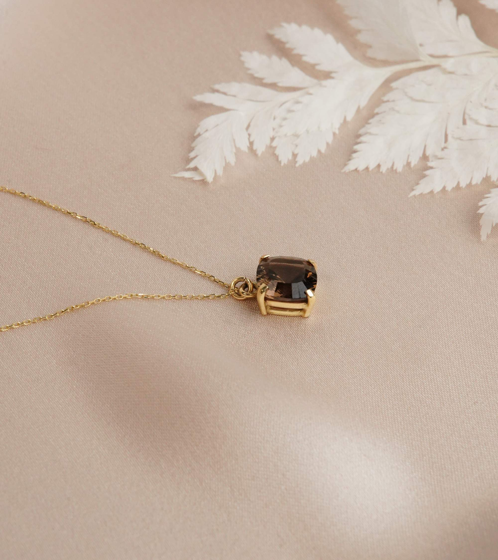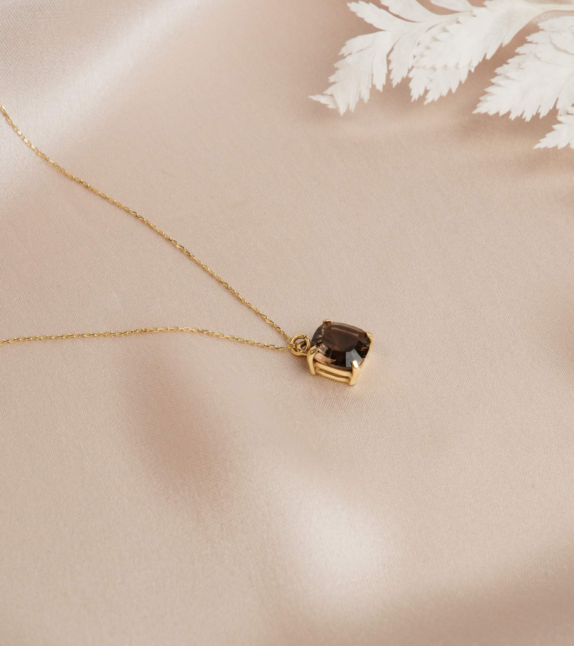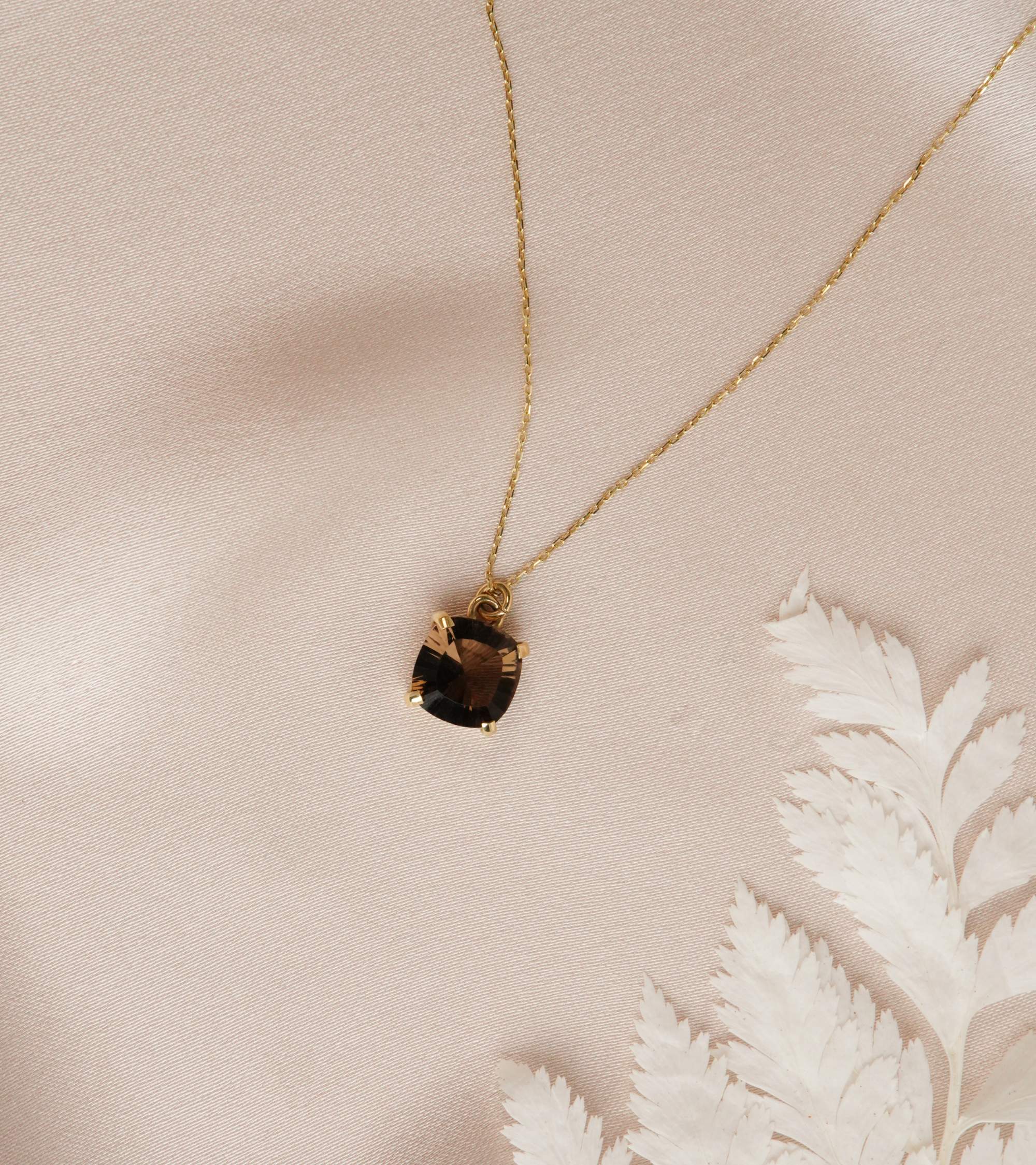 14K Gold Necklace with Smoky Quartz Stone