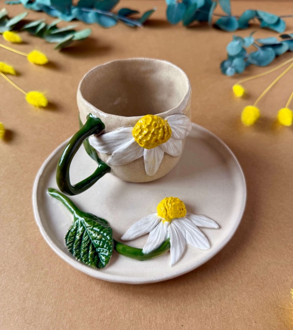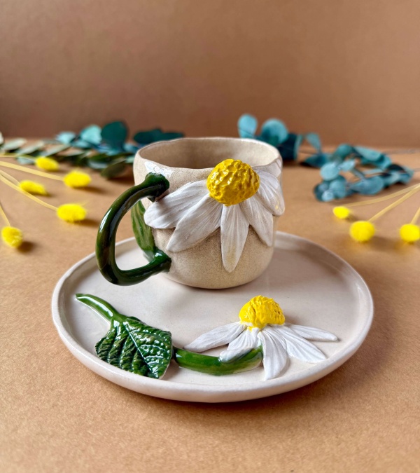 Coffee Mug Set with Big Daisy