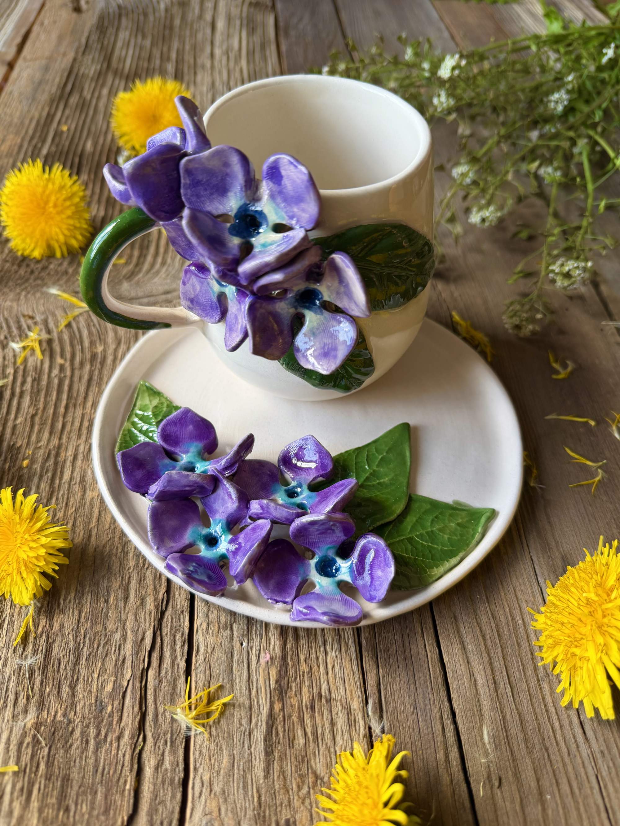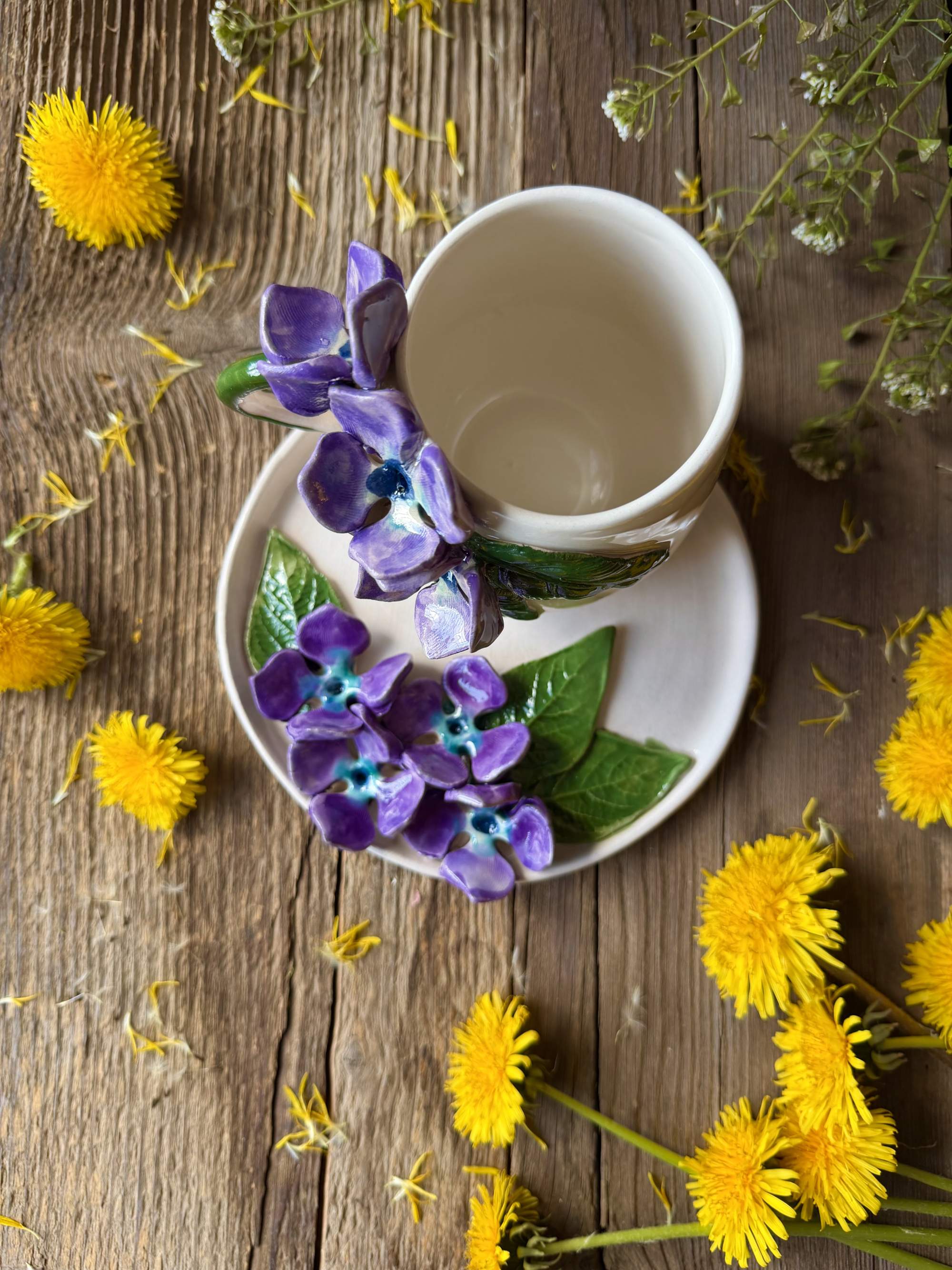 Coffee Mug Set with Hydrange Flower