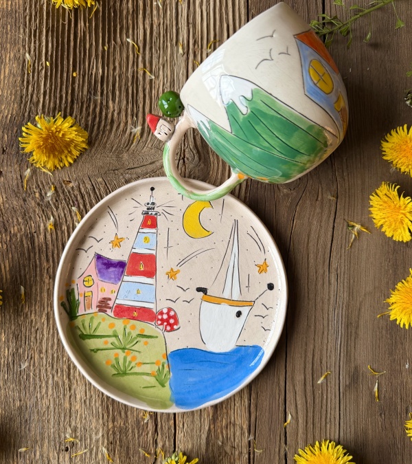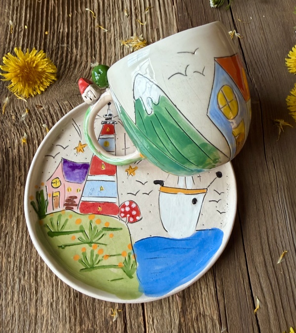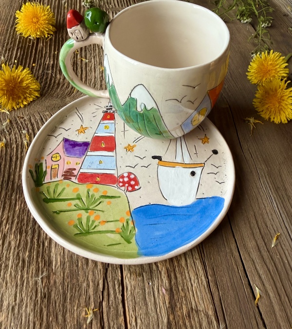 Coffee Mug Set with Sea Design