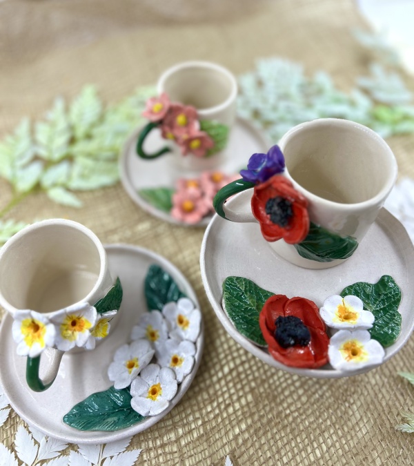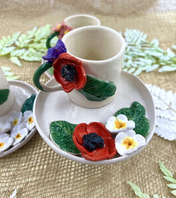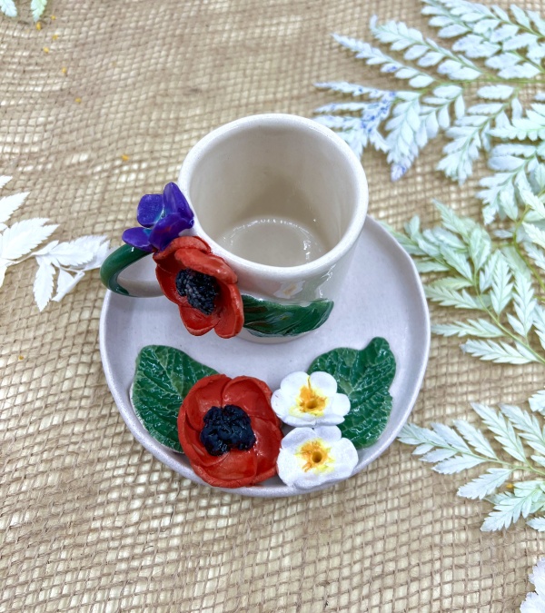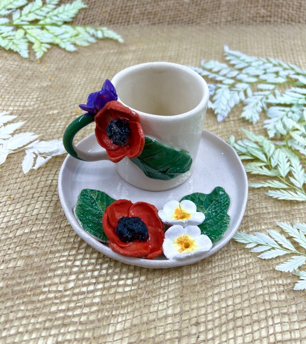 Espresso Cup Set with Poppy Flower