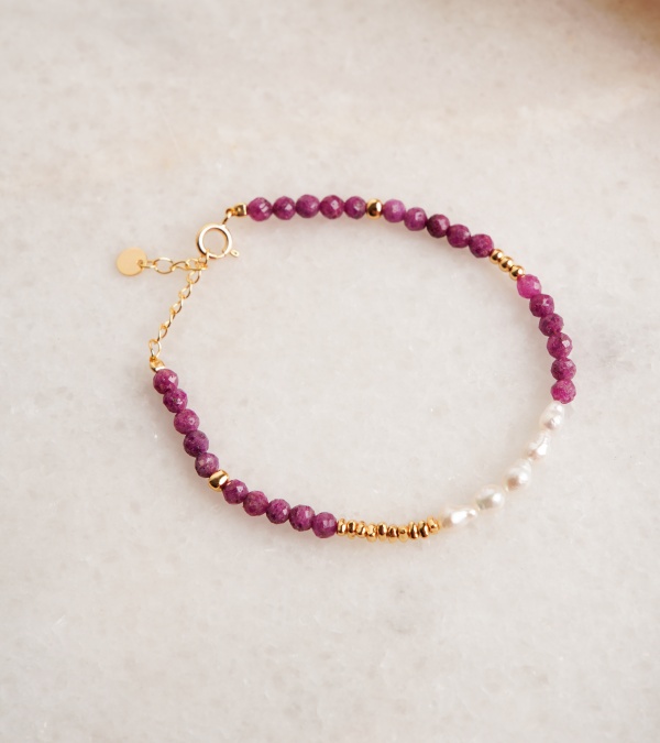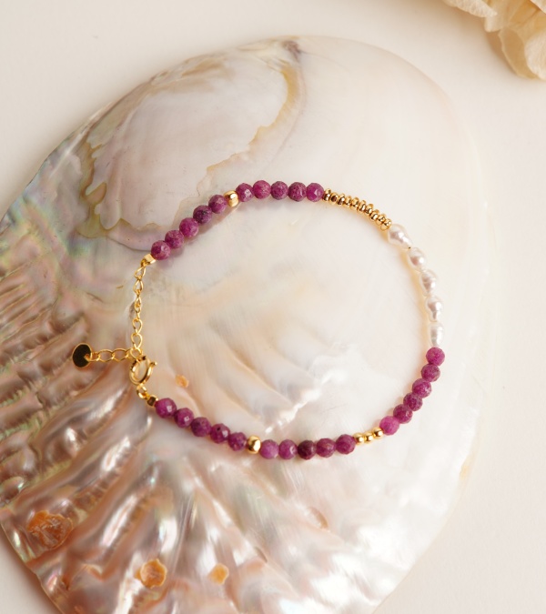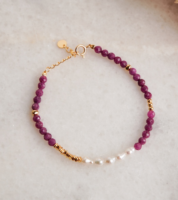Silver Bracelet with Pearl and Garnet