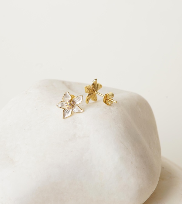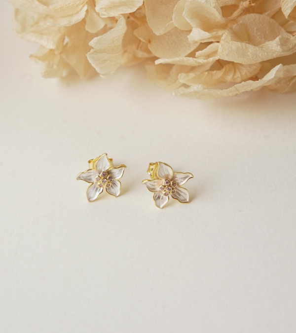 Silver Earrings with Flower Design