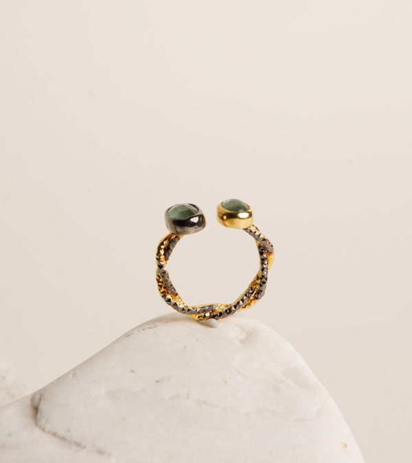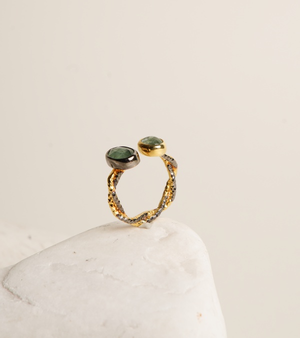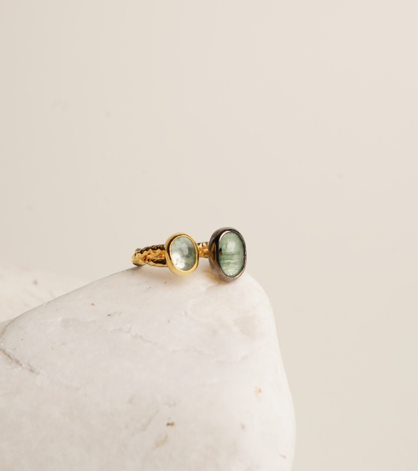 Silver Ring with Kyanite and Aquamarine