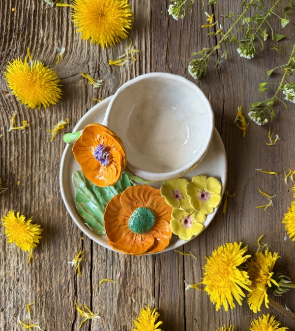 Turkish Coffee Cup Set with Orange Flowers