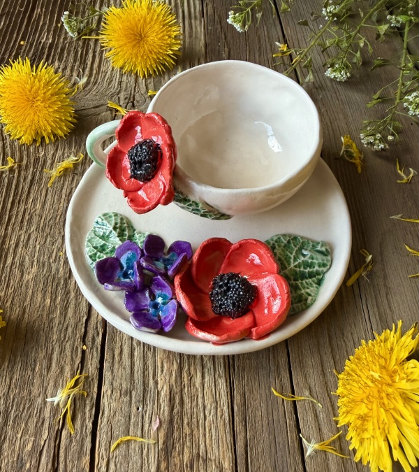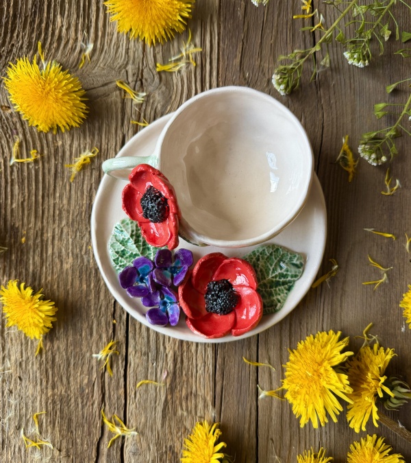 Turkish Coffee Cup Set with Poppy Flower