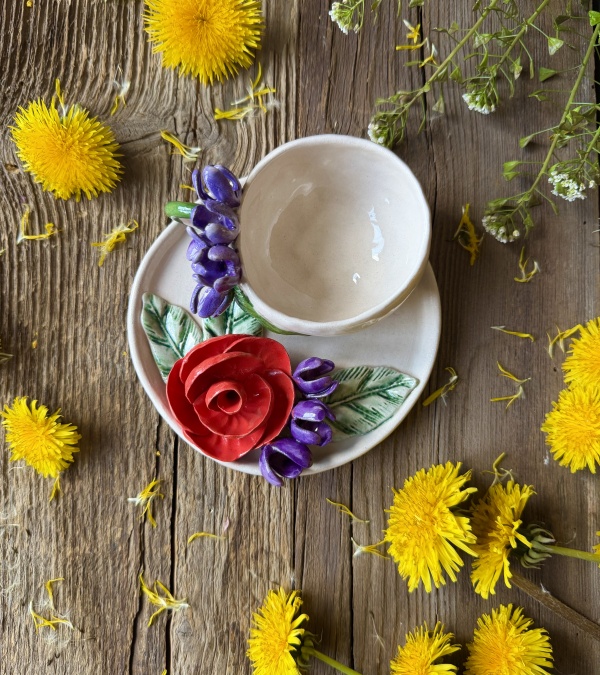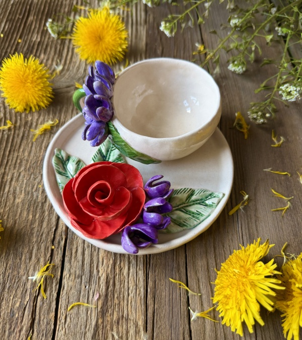 Turkish Coffee Cup Set with Rose Flower