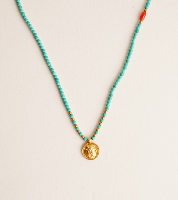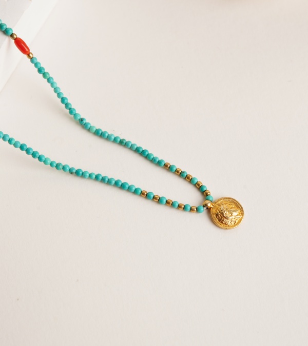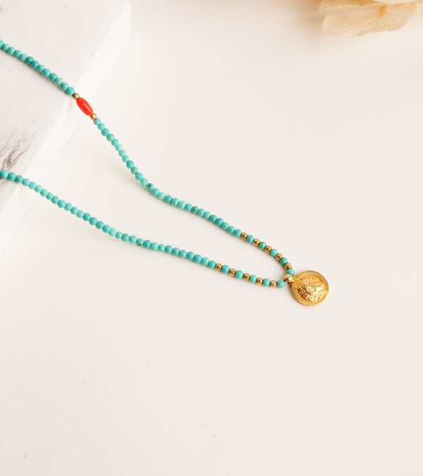 Antik Figürlü Turkuaz Taşlı Gümüş Kolye