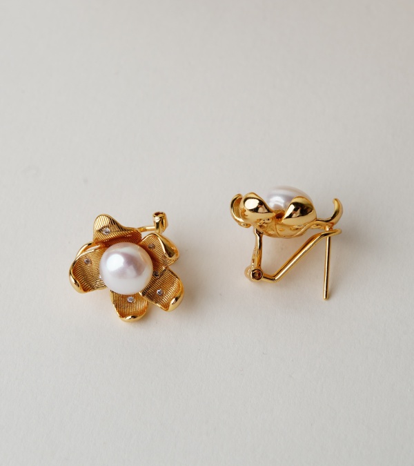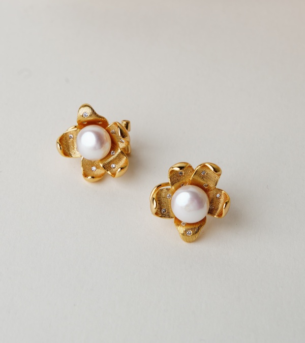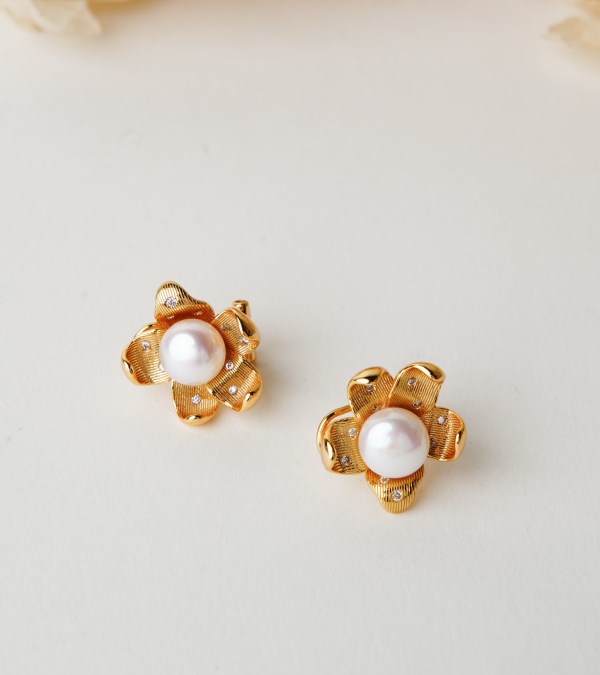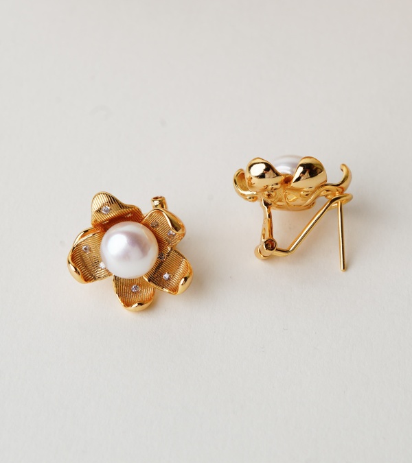 Çiçek Tasarımlı İncili Gümüş Küpe