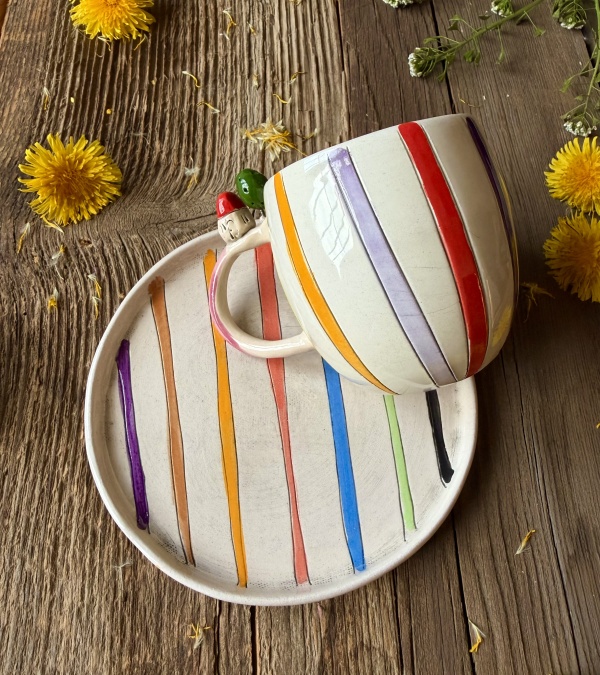 Çizgili Kahve Mug Set