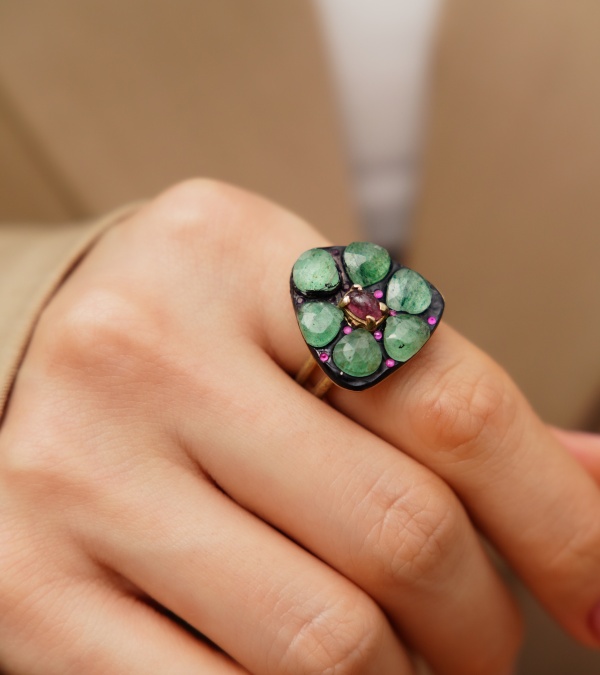 El Yapımı Tasarım Gümüş Yüzük Aventurin Taşlı