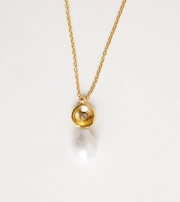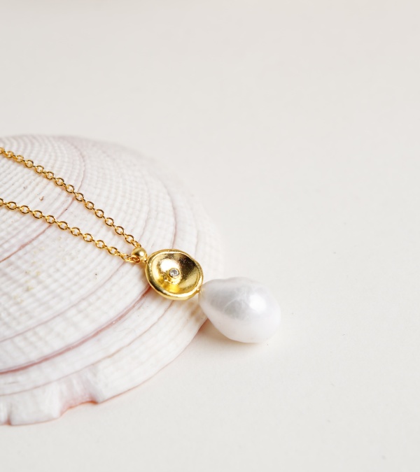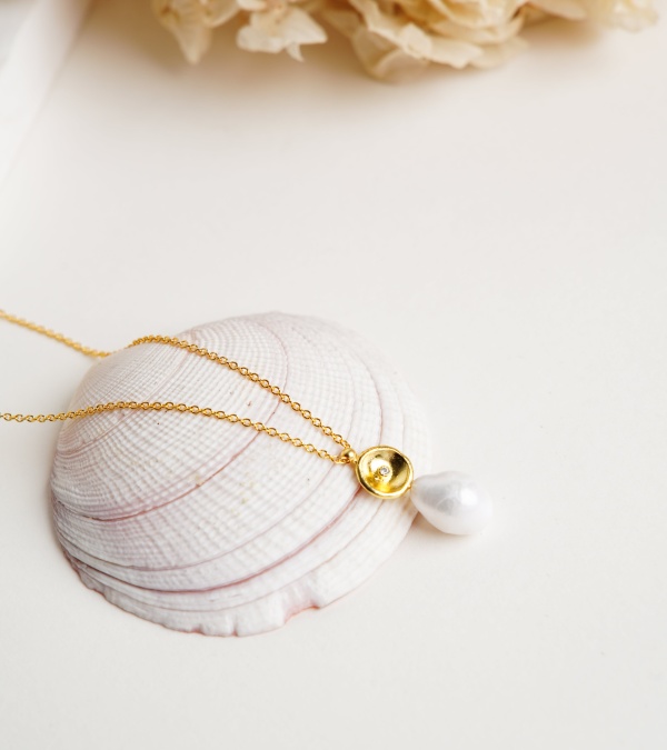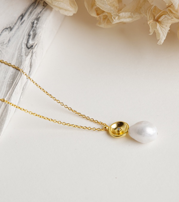 İnci ve Zirkon Taşlı Gümüş Kolye