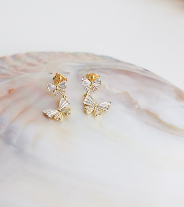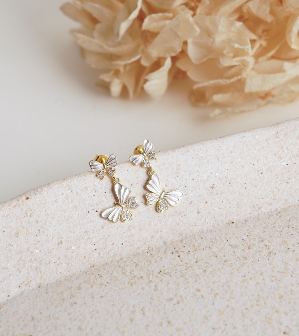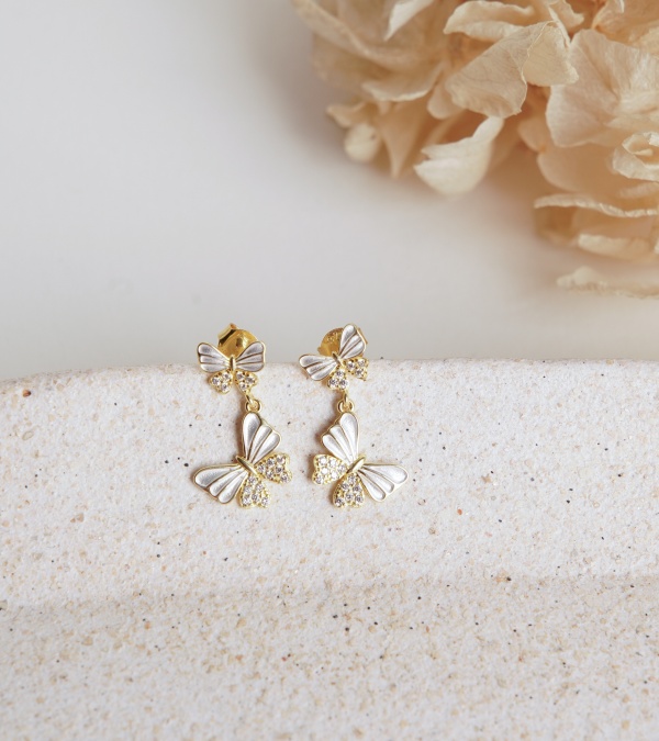 Kelebek Motif Gümüş İşleme Küpe