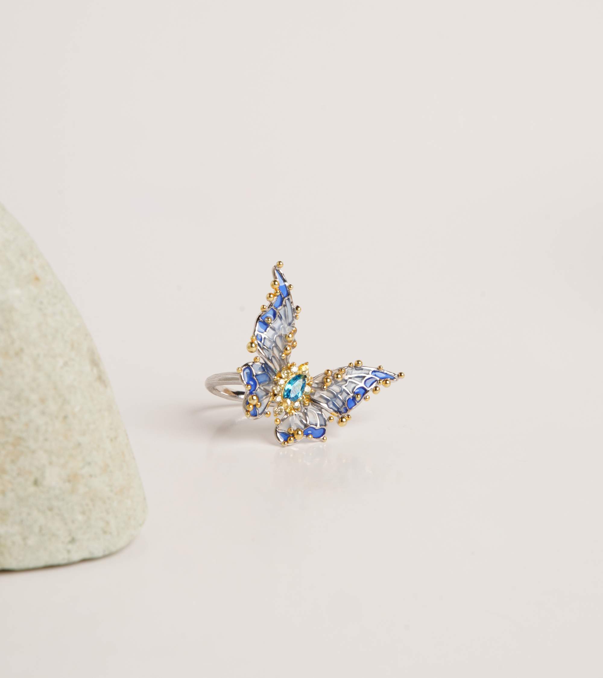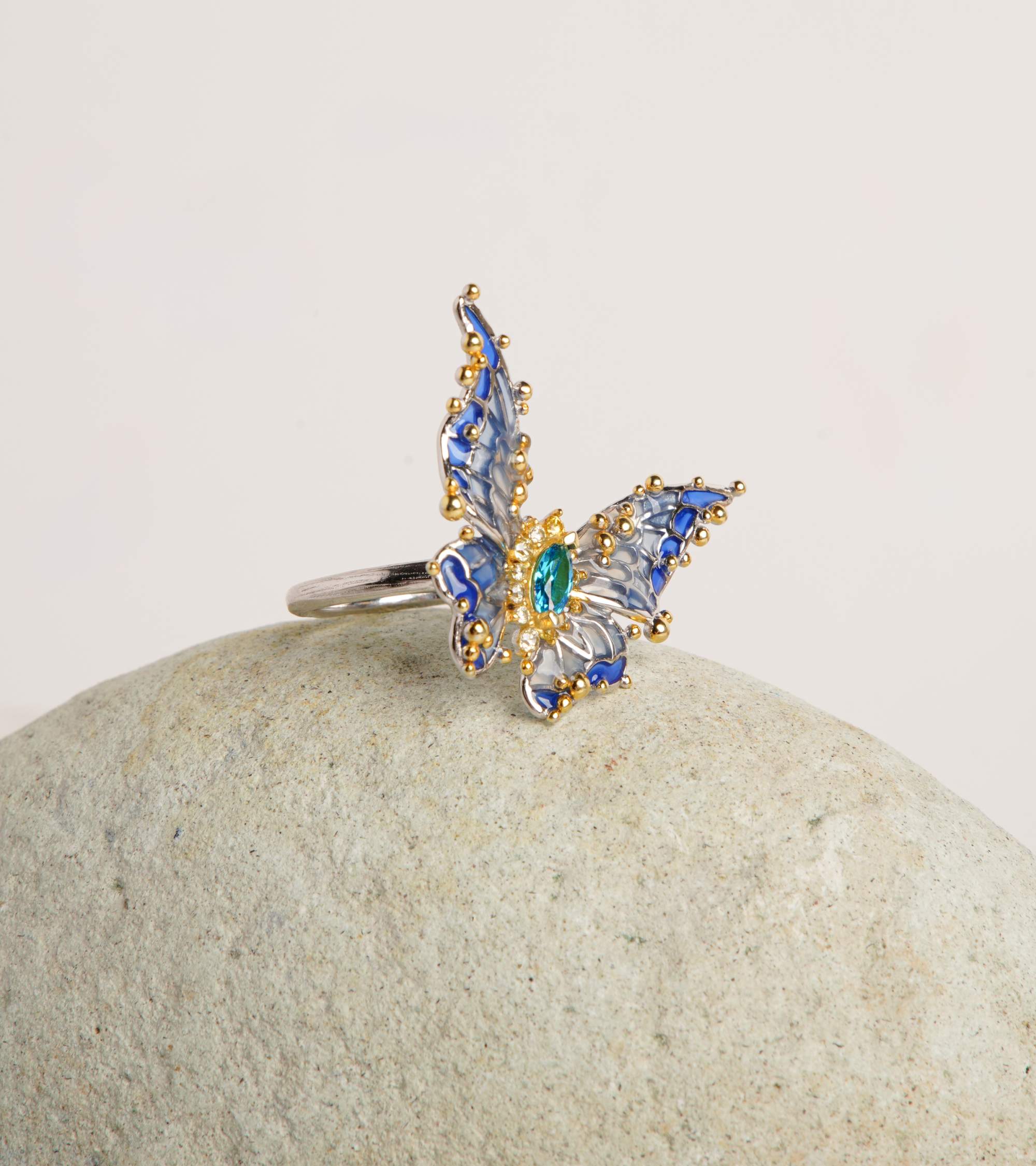Kelebek Tasarım Mine İşlemeli Gümüş Yüzük