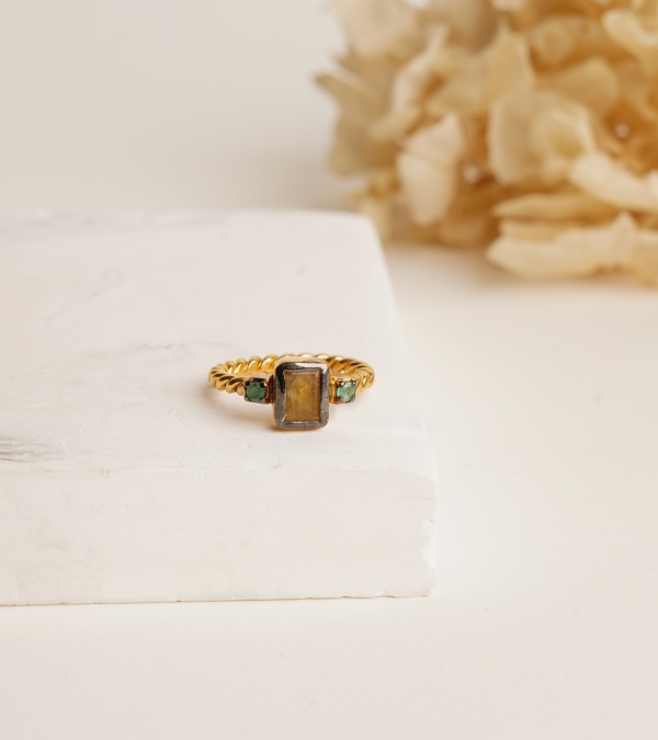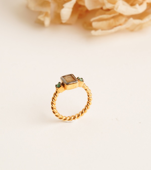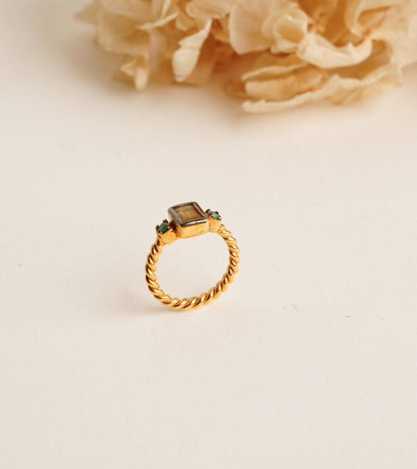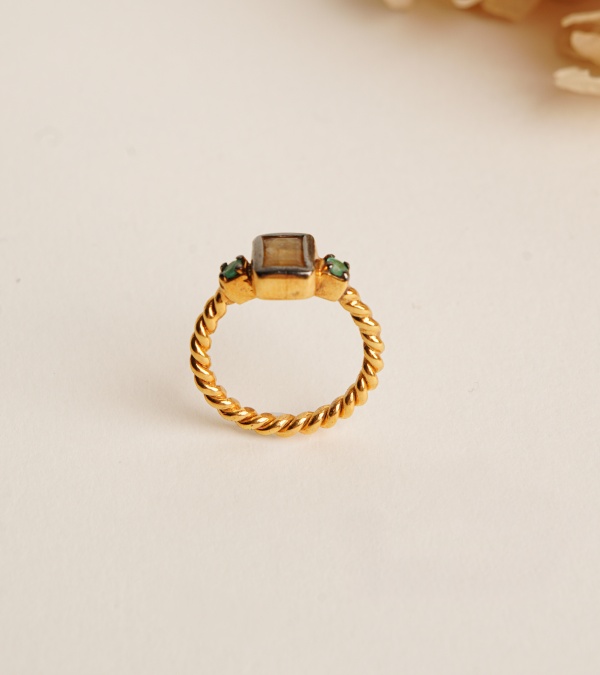 Kuvars ve Zümrüt Taşlı Gümüş Yüzük