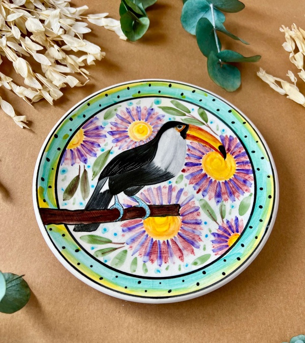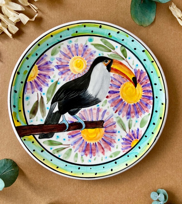 Özel Tasarım Çini Tabak Tukan Kuşu