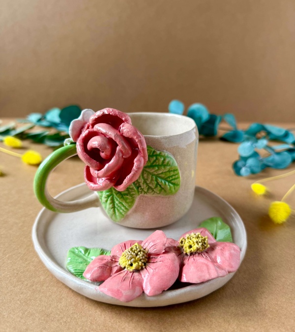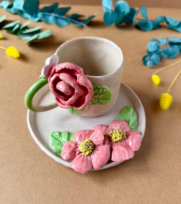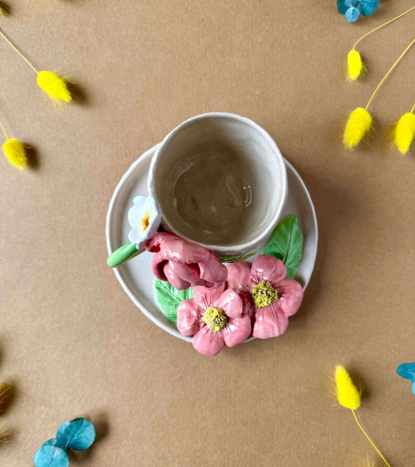 Pembe Çiçekli Kahve Mug Set