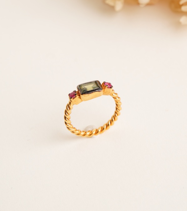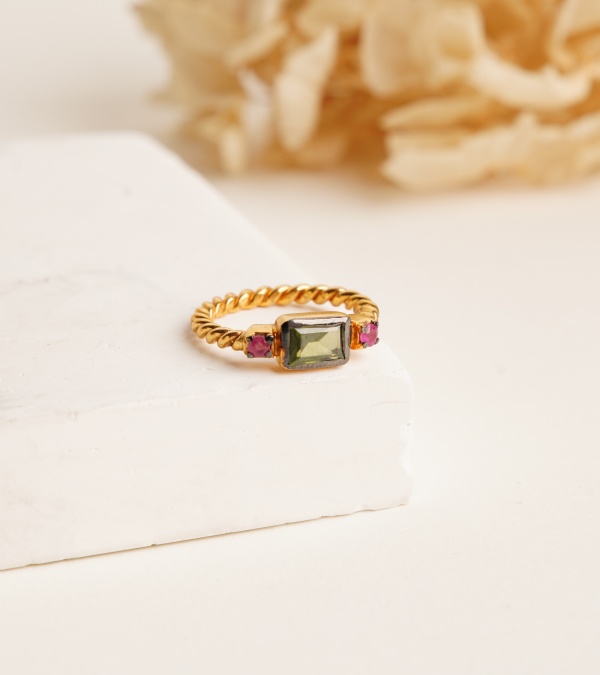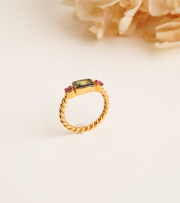 Peridot ve Yakut Taşlı Gümüş Yüzük