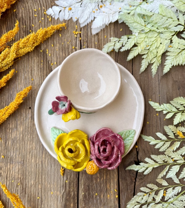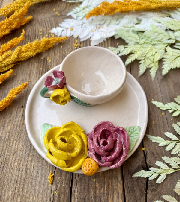 Sarı Çiçekli Türk Kahvesi Fincan Set