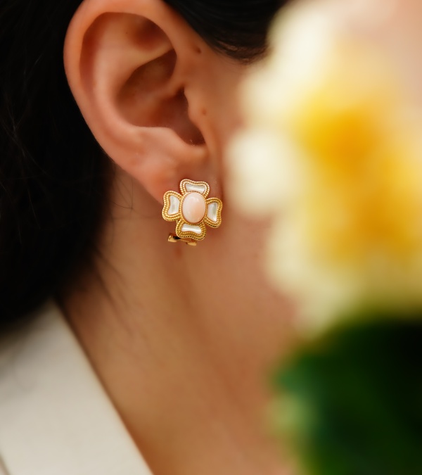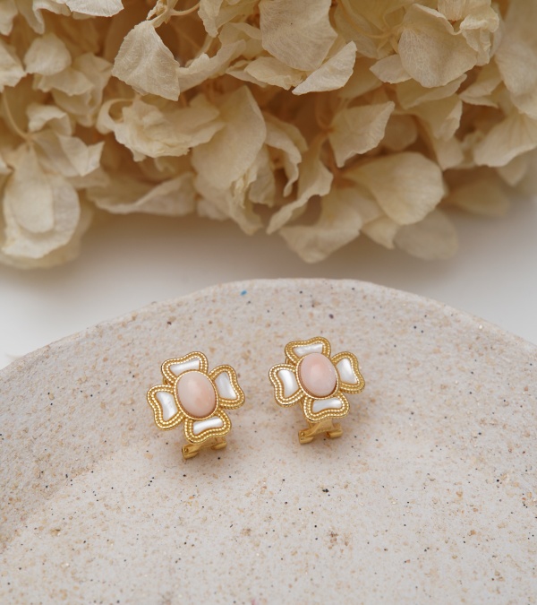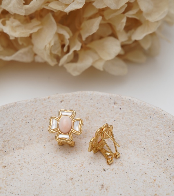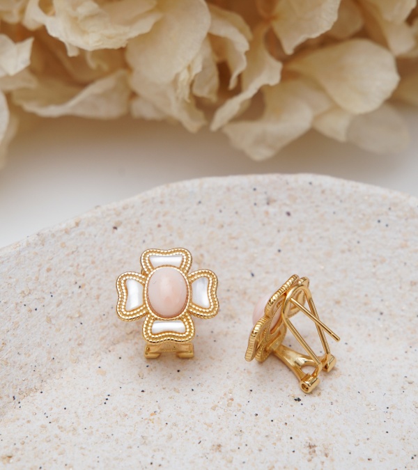 Sedef ve Pembe Mercan Gümüş Küpe