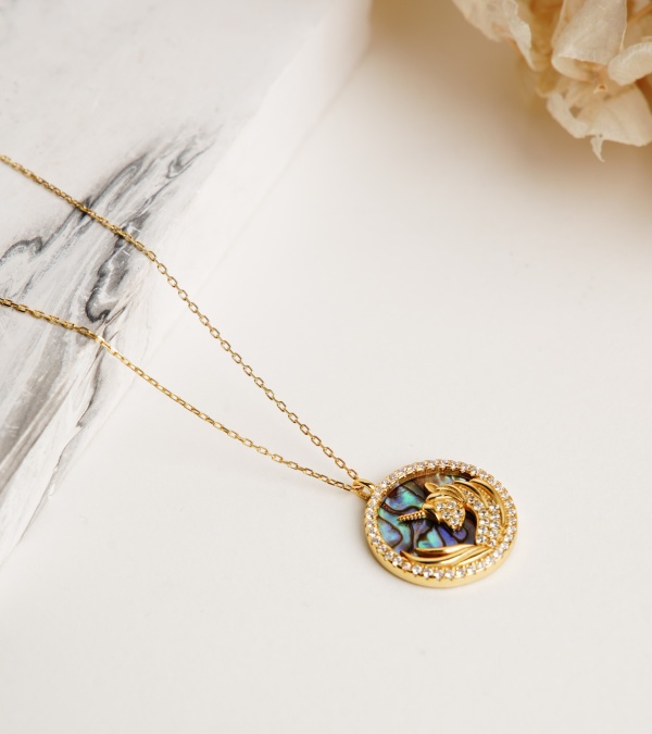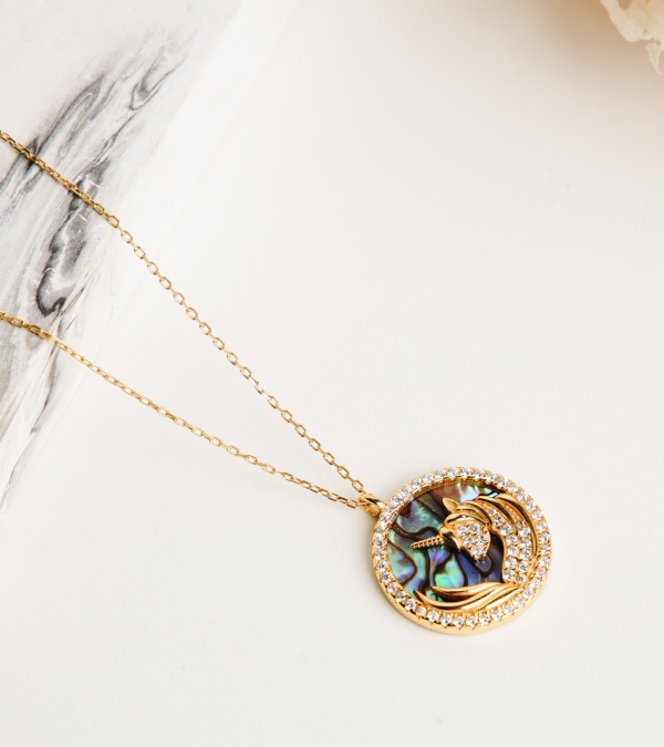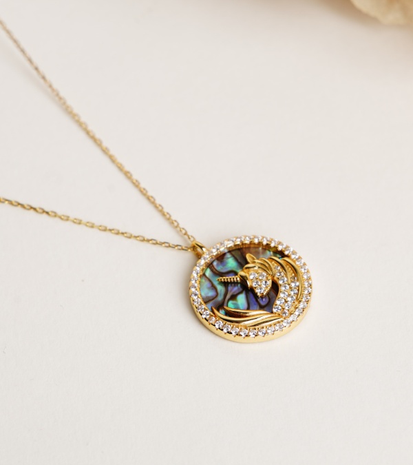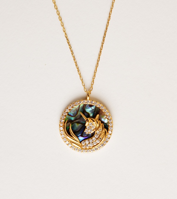 Sedefli Unicorn Tasarımlı Gümüş Kolye