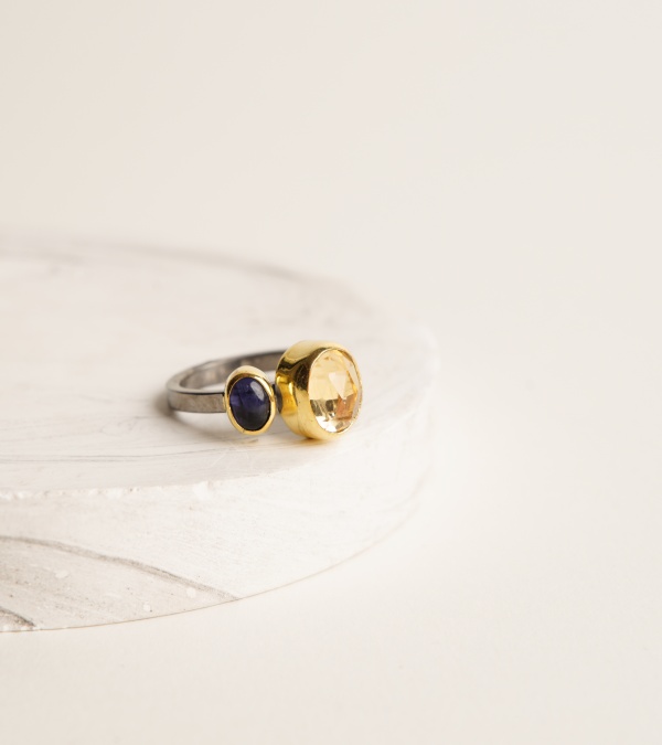 Sitrin ve Tanzanit Taşlı Gümüş Yüzük