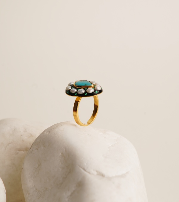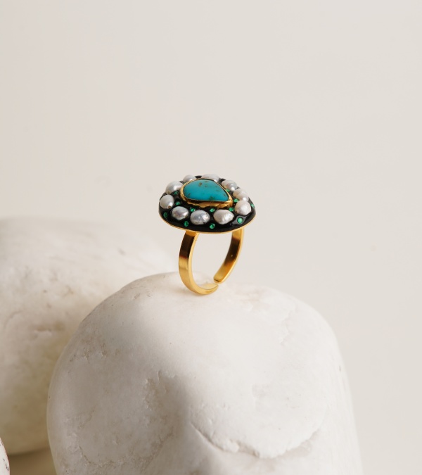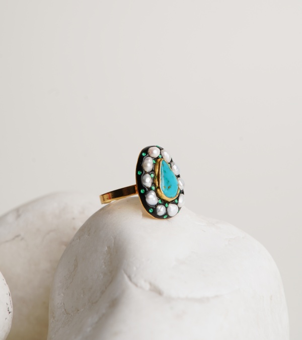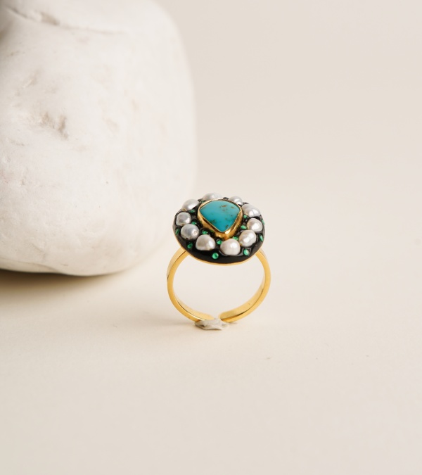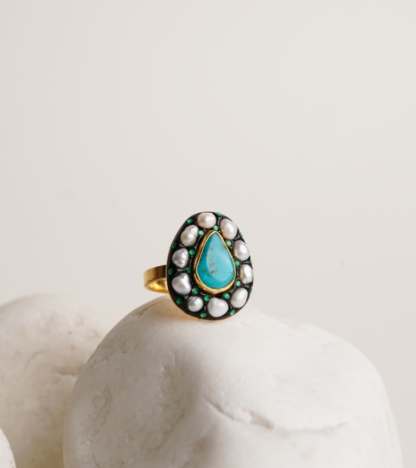 • İnci ve Turkuaz Taşları Kullanılmıştır,