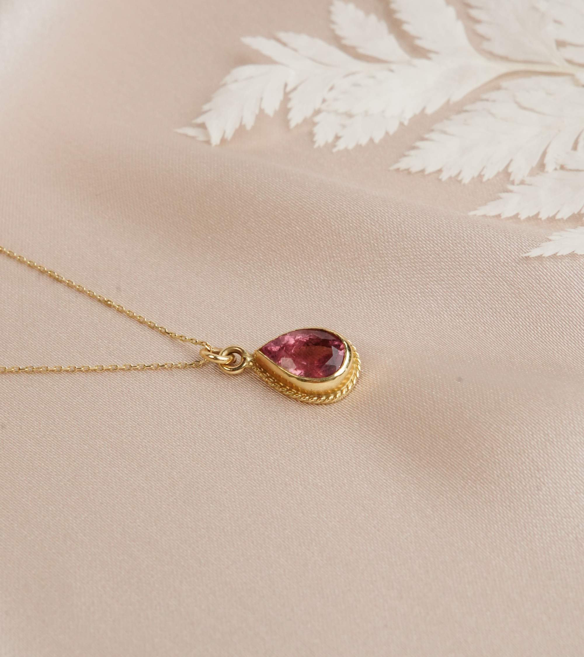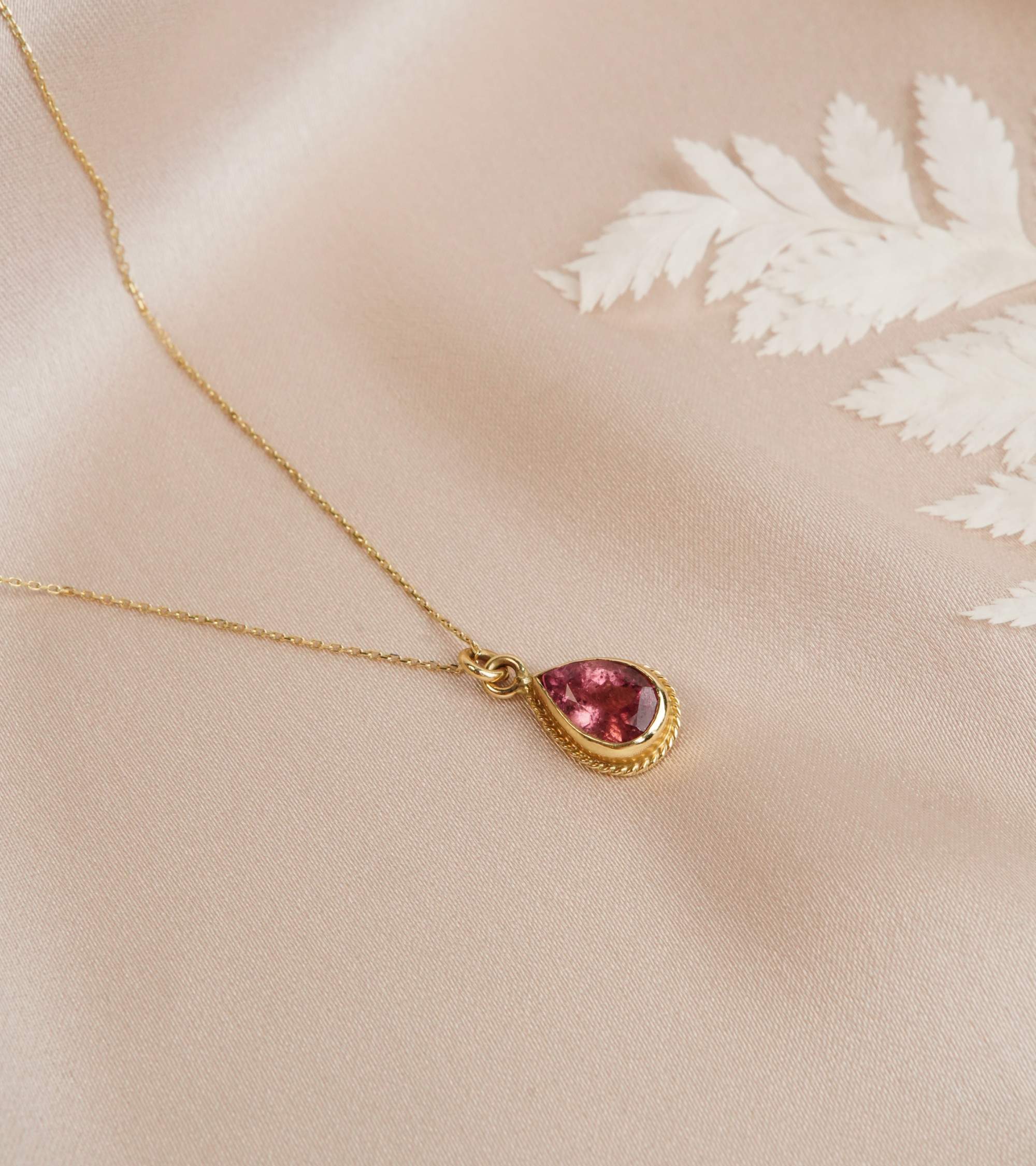 Turmalin Taşlı 14K Altın Kolye