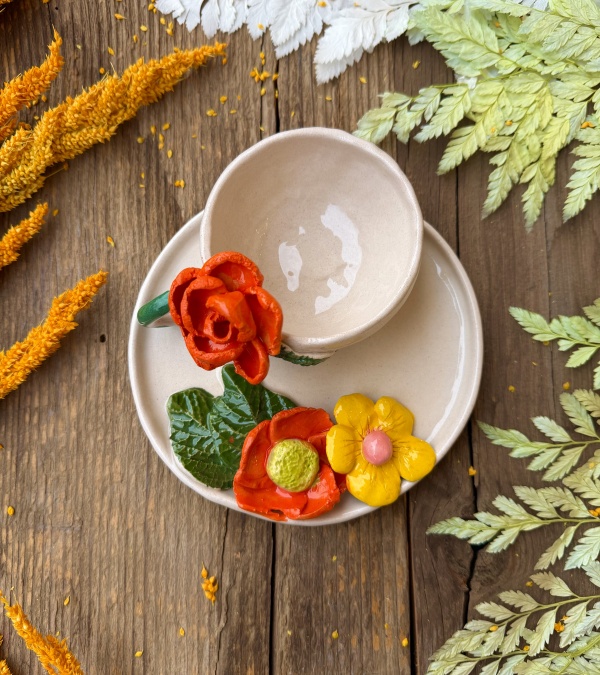 Turuncu Çiçekli Türk Kahvesi Fincan Set